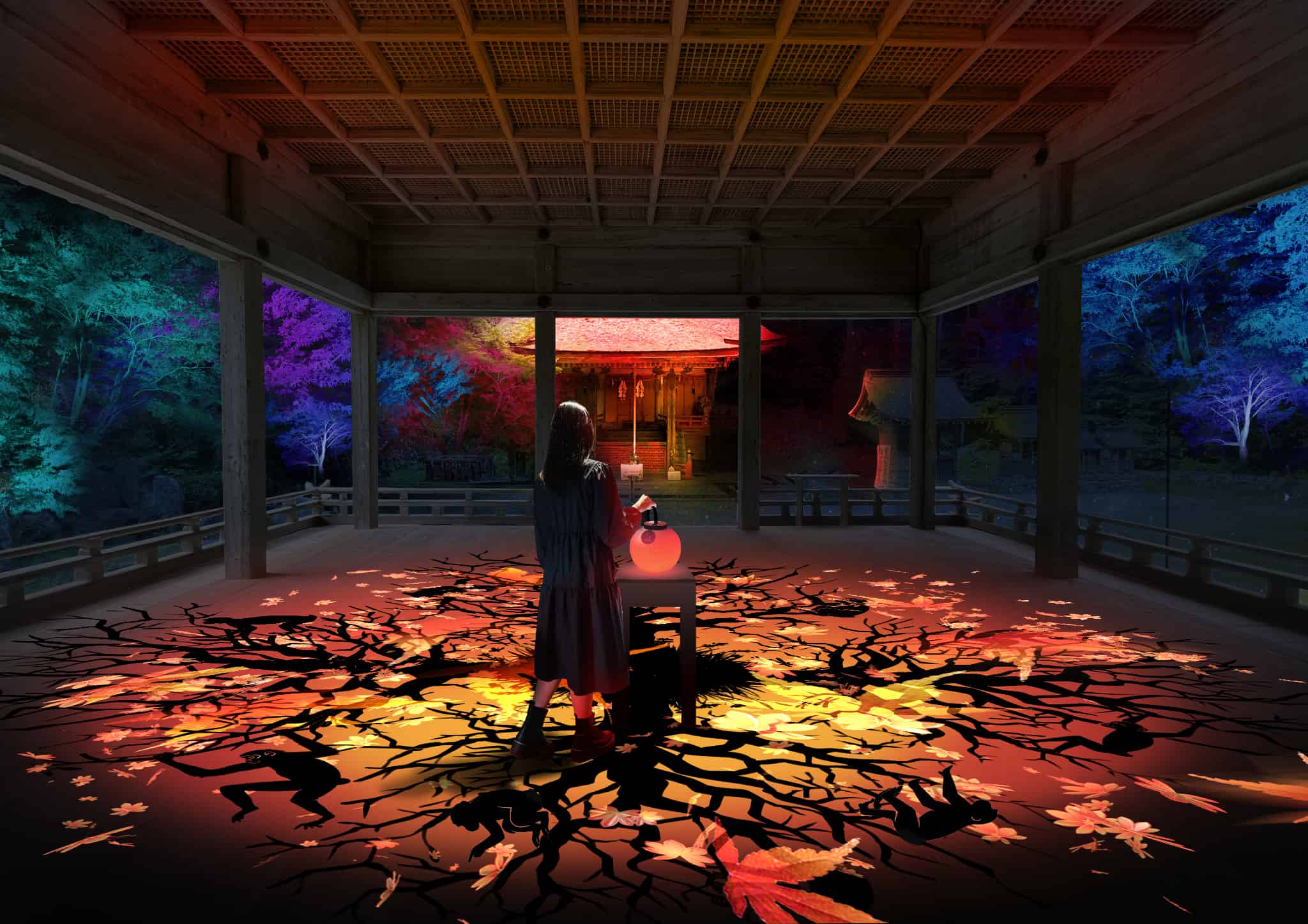 您将体验一场互动式演出,神猿与日吉大社神圣的树木在光与声音的呼应中交相辉映。